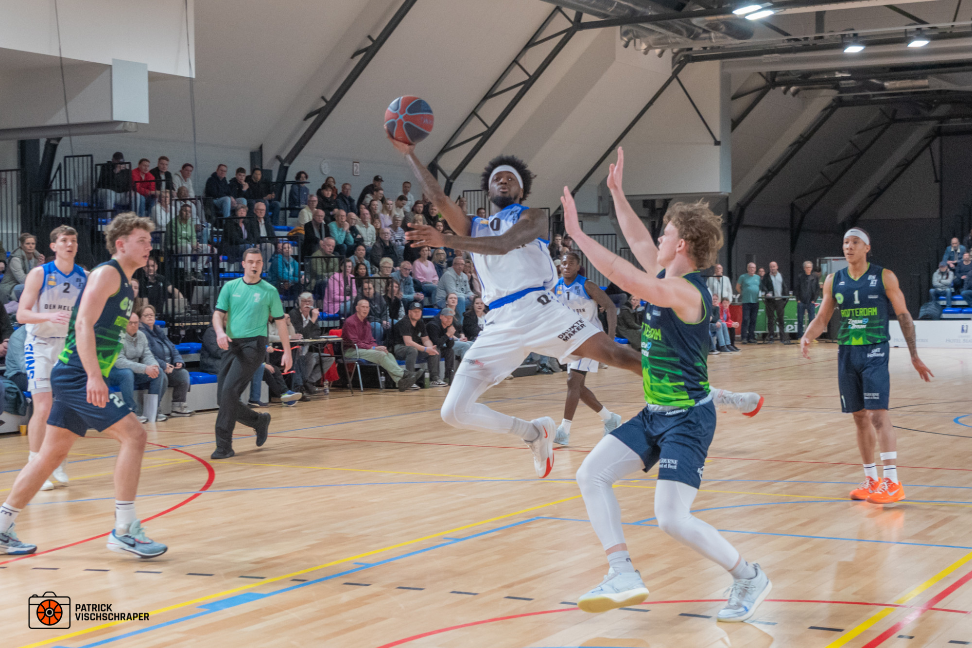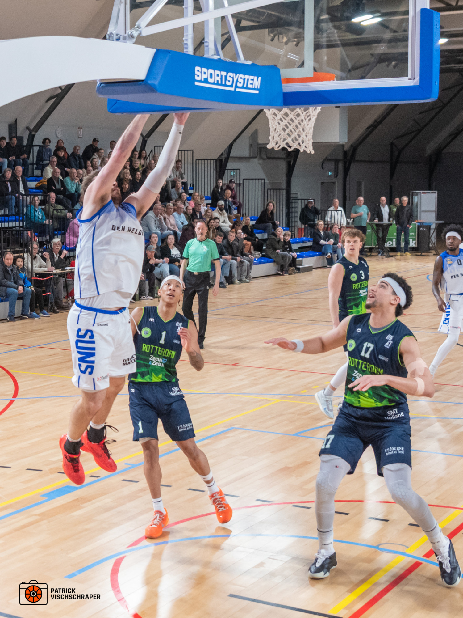 De Den Helder Suns hebben zaterdagavond een klinkende overwinning geboekt op Rotterdam City Basketball. De Rotterdammers begonnen sterk aan de wedstrijd en kwamen al snel op een 6-12 voorsprong. Daarop volgde een time-out van Den Helder Suns. De thuisploeg herpakte zich direct, knokte zich terug tot 13-14 en nam vervolgens het initiatief volledig over. Met een krachtige run draaiden de Suns de stand om en liepen zij via een indrukwekkende fase uit naar 27-18, wat tevens de eindstand van het eerste kwart was.